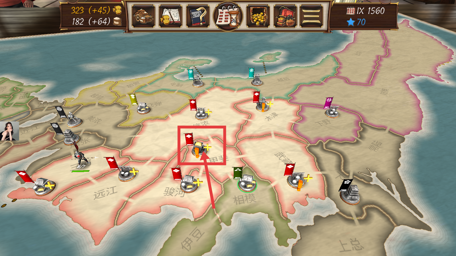1、关注地图上的关键据点(如甲斐地区据点),作为领地扩张和资源控制的核心,逐步推进势力范围。