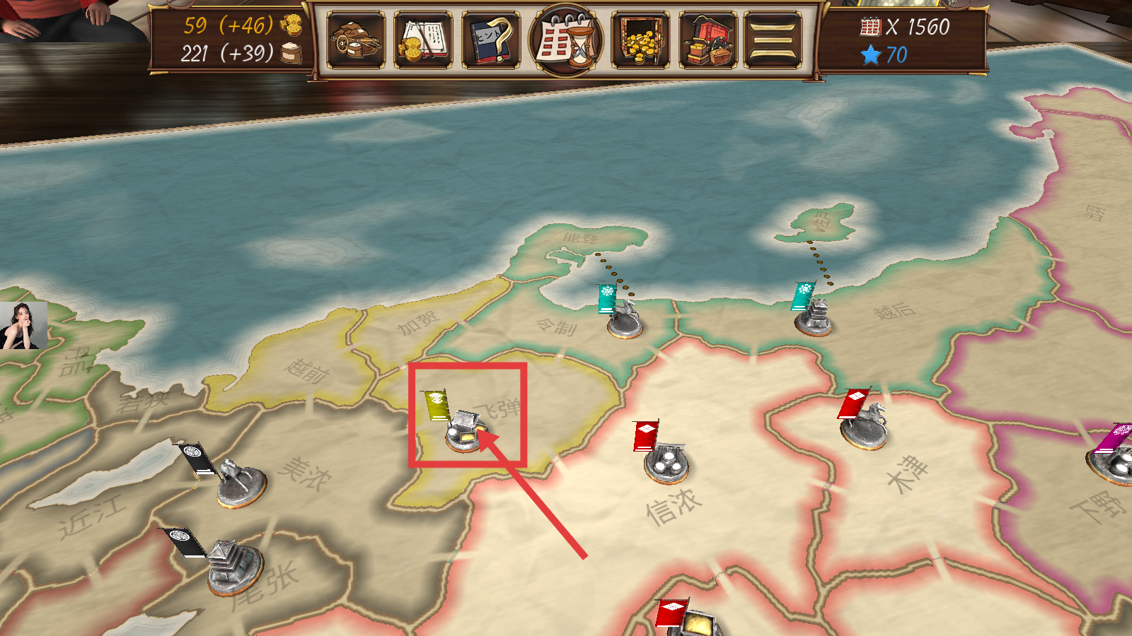 1、关注地图上的城镇节点,如飞弹地区,点击可查看城镇详情,为领土扩张或外交策略做规划。