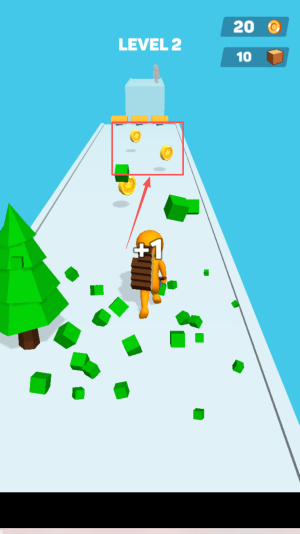 2、跑酷收集木头:操控角色在赛道跑酷,用武器砍伐沿途树木,高效收集木头,避免错过资源点,积累解锁道具的材料。