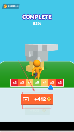 4、最后,冲线显示“COMPLETE 82%”及倍数奖励,点“×2”领取再进下一关。