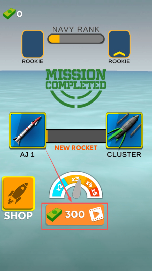 4、领取NEW ROCKET AJ1与300金币,回SHOP升级火力,继续下一任务。