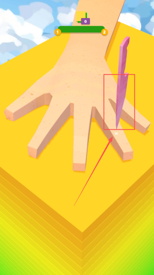 1、开启挑战准备:进入游戏后选择关卡,熟悉刀的下落规律,明确 “避伤手、完成剁手” 目标,了解武器解锁规则。