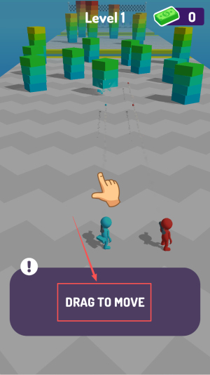 2、接着,按照提示「DRAG TO MOVE」拖动角色,避开障碍或敌人。