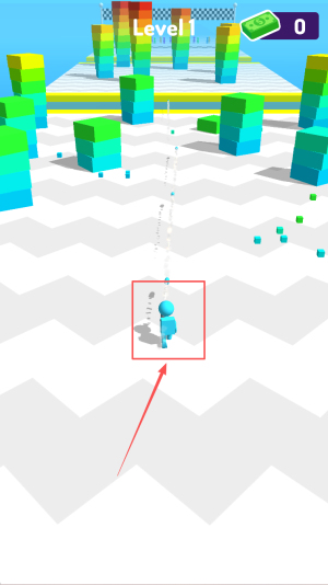 1、开启闯关准备:进入关卡后观察赛道地形与障碍分布,明确 “堆叠方块搭桥、躲避危险” 目标,了解方块形状特性与奖励规则。