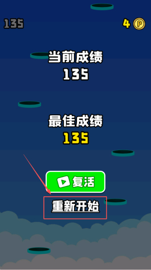 4、面板显示,点「重新开始」可立即再刷纪录;若中途失误,选「口复活」续命继续。