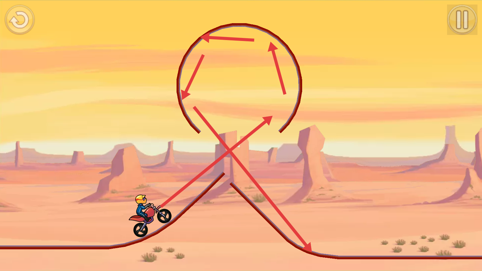 3、遇到环形赛道时,操控摩托车完成特技,精准把控方向,顺利通过复杂赛道。