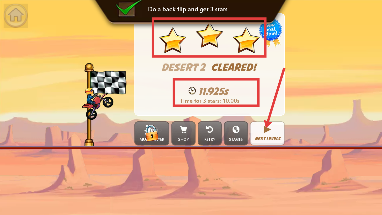 4、通关后获得三星评价,用时【11.925s】,点击【NEXT-LEVELS】继续挑战后续关卡。
