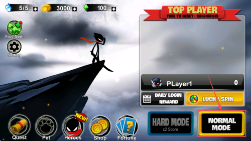 3、如何选择模式:返回主菜单后,点击NORMAL MODE或HARD MODE选择难度。