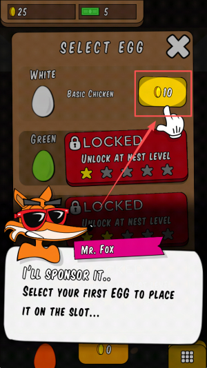 2、按提示轻敲鸟巢,打开选蛋面板。