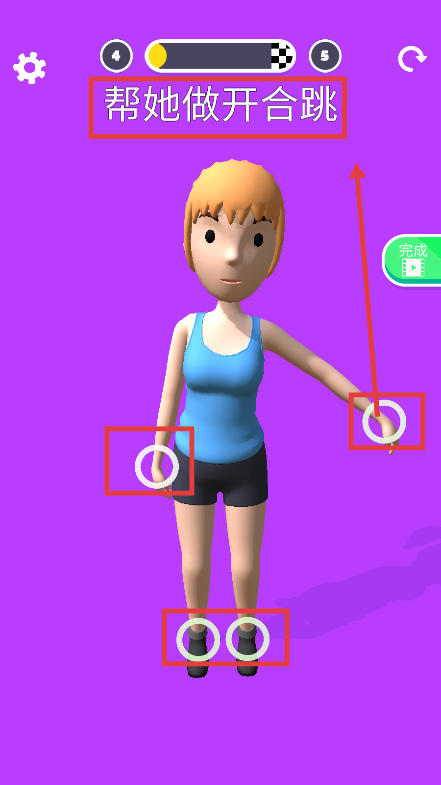 2、做开合跳时,依次点击角色手脚的标记点,按动作顺序完成开合跳步骤。