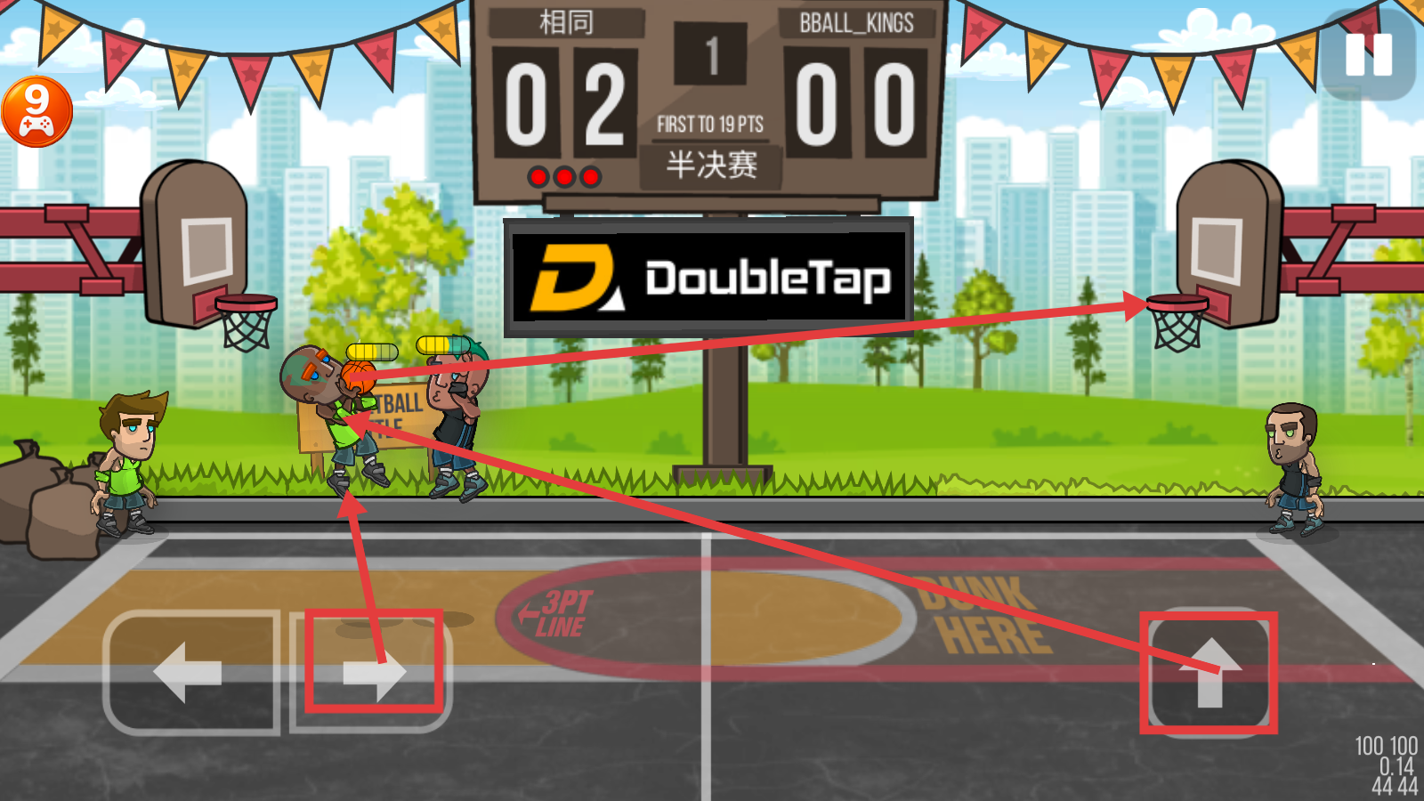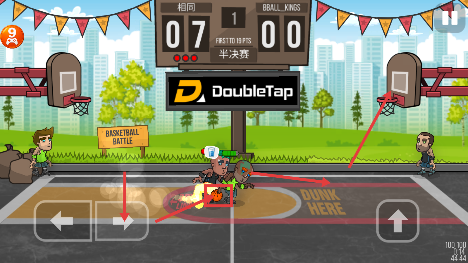 2、半决赛中操作【向右】键移动,点击【向上】键投篮,瞄准篮筐,争夺分数领先。