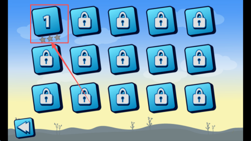 2、选择关卡,选择图中数字1进入第一关游戏界面。