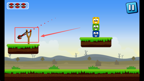 3、弹射摧毁方块:释放弹球完成弹射,利用弹球反弹撞毁方块,若未全清则调整角度重试,直至消灭所有方块。