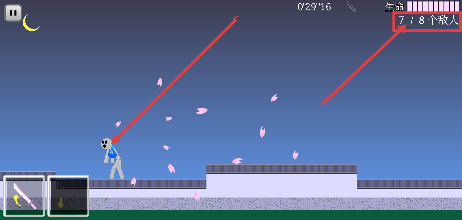 樱之刃是一款采用2D横版卷轴设计的动作冒险类游戏,以简约火柴人形象为主角展开奇幻冒险之旅。画面运用高对比度色块组合构成清新视觉风格,角色动作流畅自然充满张力。操作机制基于触屏滑动实现精准移动与攻击,点击敌人即可发动迅捷斩击。关卡系统包含数十个独立场景,每个场景有独特敌人配置与地形设计,支持自由选择挑战顺序。