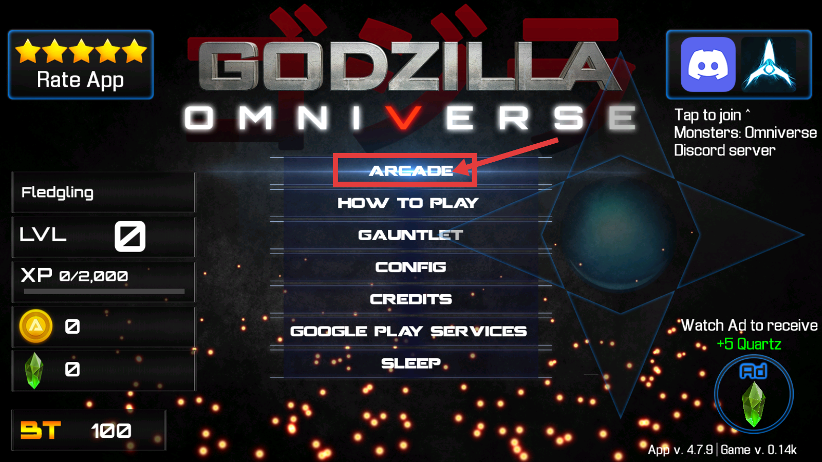 1、进入游戏后,选择【ARCADE】模式开启冒险,可体验街机风格的哥斯拉战斗玩法。