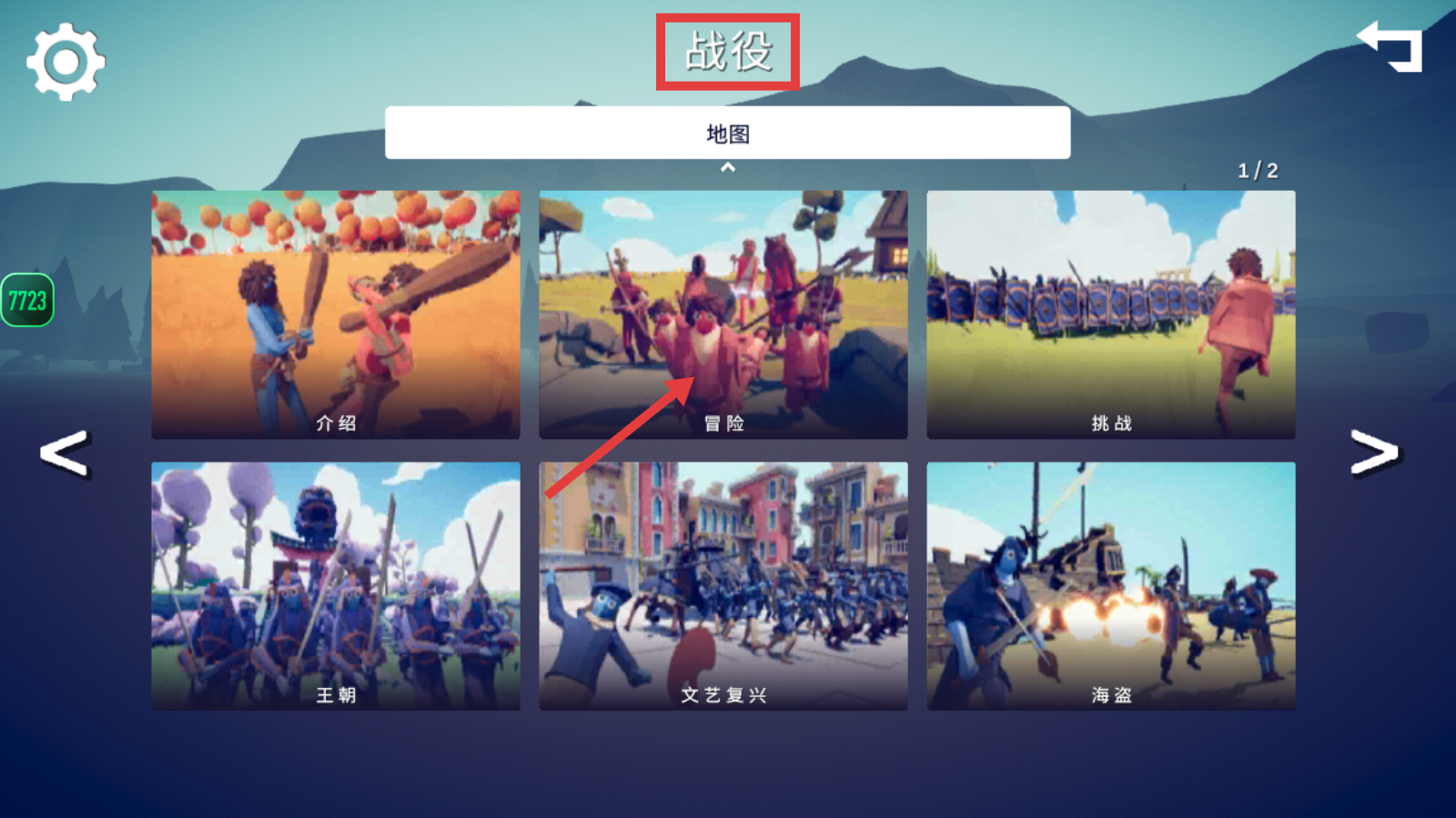 1、进入游戏后选择【战役-冒险】模式,开启战斗关卡,可体验不同时代的战斗场景,开启策略对战之旅。