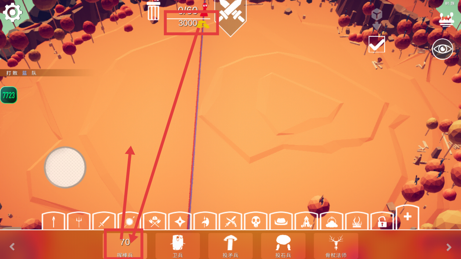 2、战斗前利用初始【3000-资源】招募【挥棒兵】等兵种,合理分配兵力,为后续战斗筑牢兵力基础。