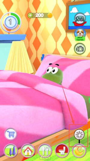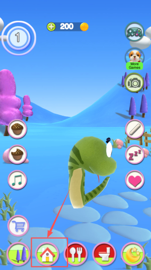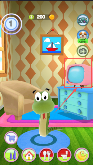 2、然后点击图中各种图标与小蛇互动如电视机。