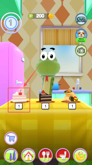 3、点击屏幕上的食物图标给小蛇进餐。