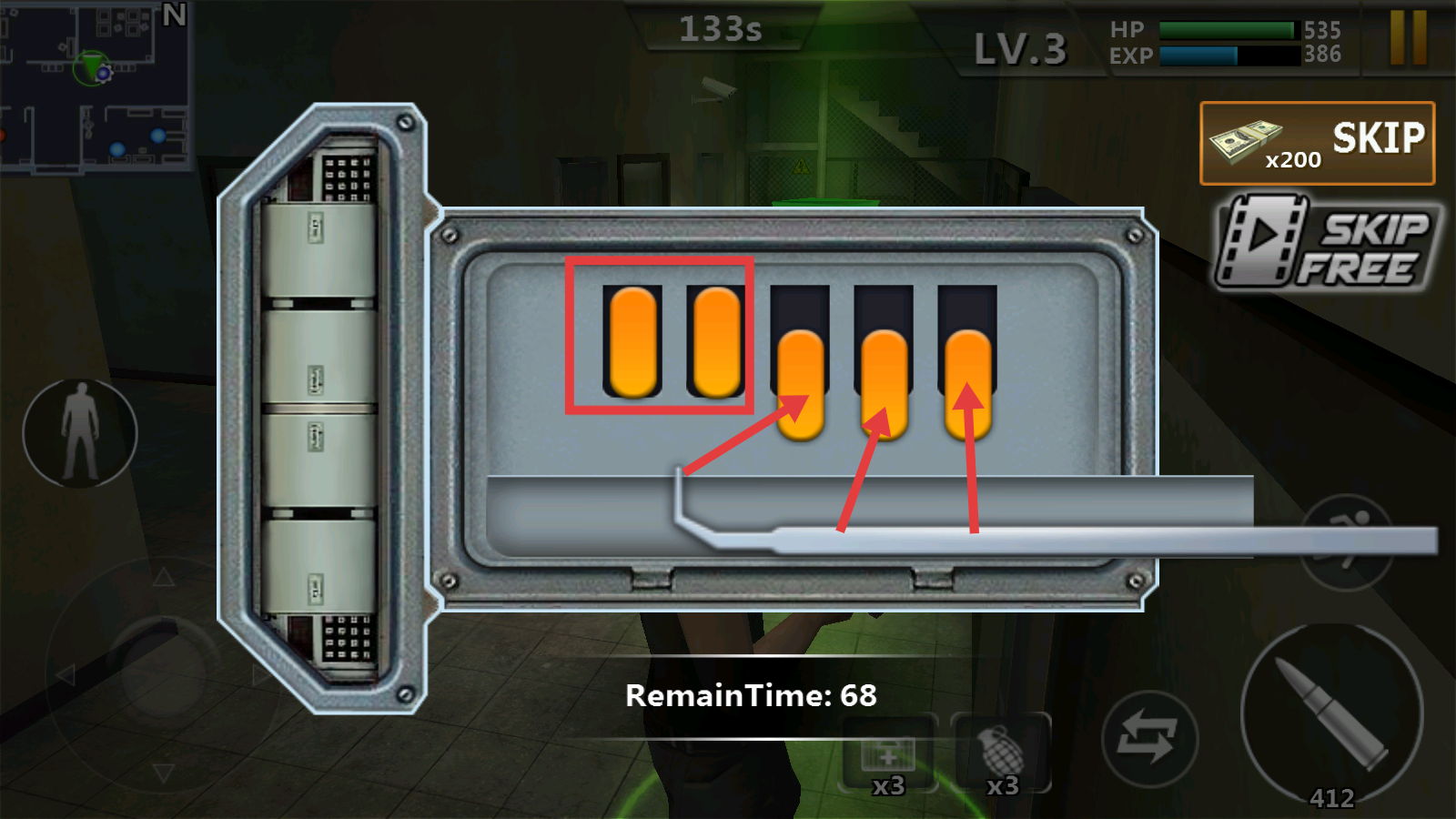 3、遇到机关界面时,按顺序操作开关,在剩余时间(如68秒)内完成机关解锁,以开启新通道或区域,推进任务进程。