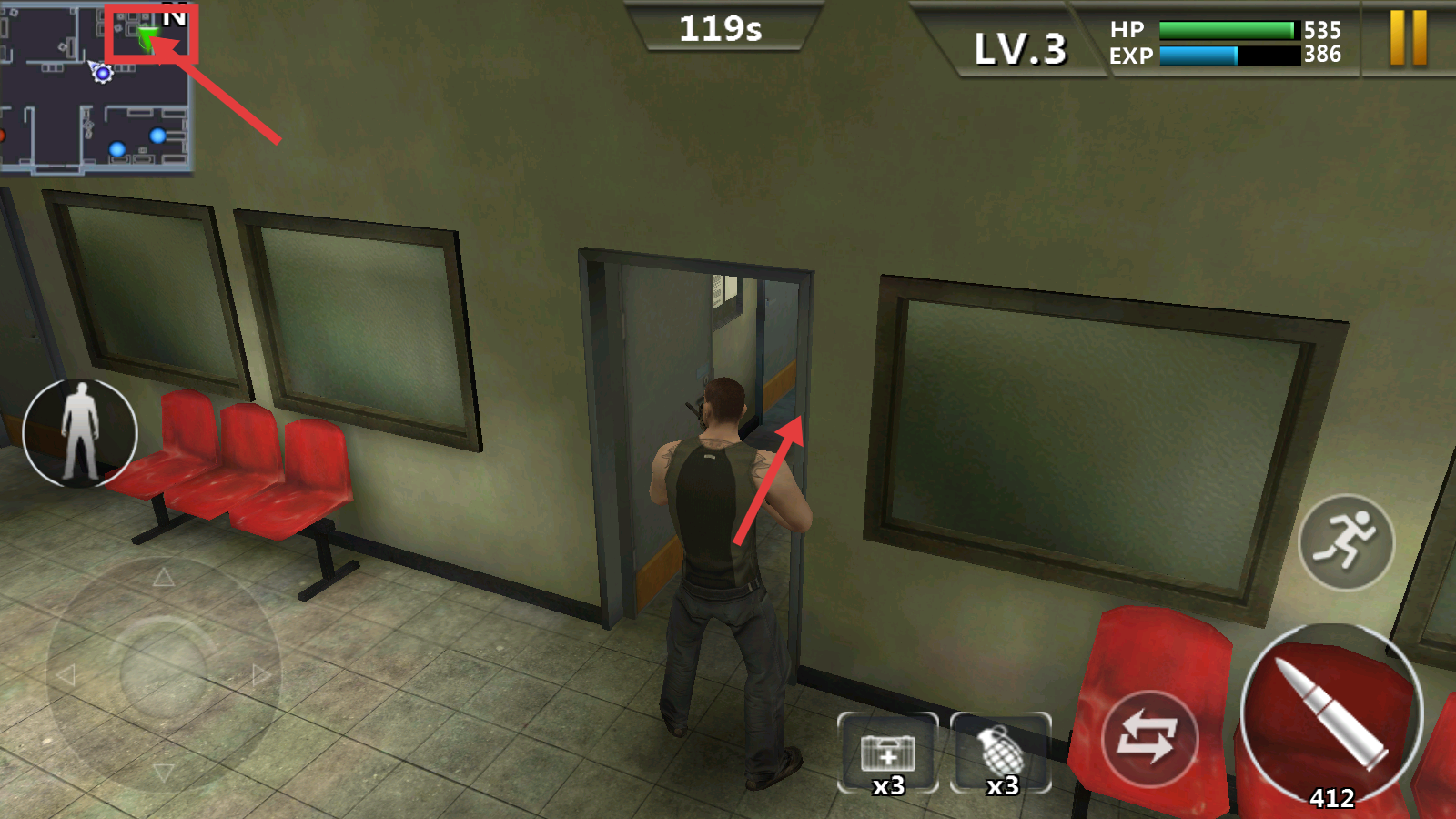 2、战斗时关注角色等级、HP等状态,点击弹药键发起攻击,留意敌人标识,及时调整战斗策略,利用武器优势消灭敌人。