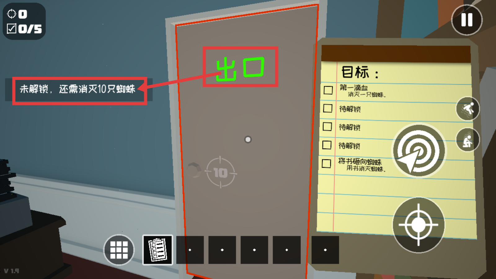2、出口需消灭【10-只蜘蛛】才能解锁,优先积累灭蛛数量,为解锁出口创造条件。
