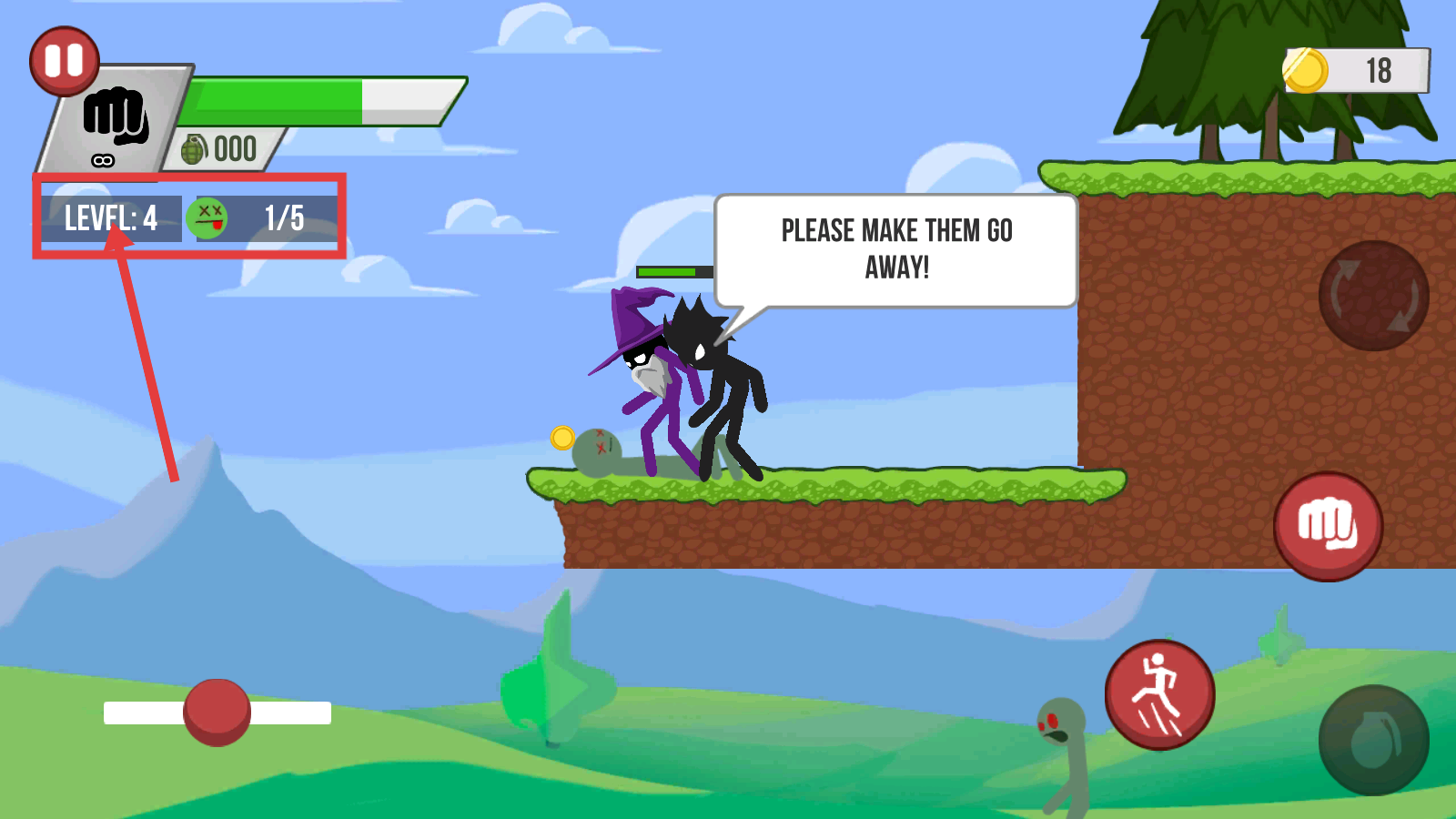 4、在【LEVEL-4】中,关注消灭敌人进度【1/5】,完成目标推进关卡,同时应对出现的敌人。