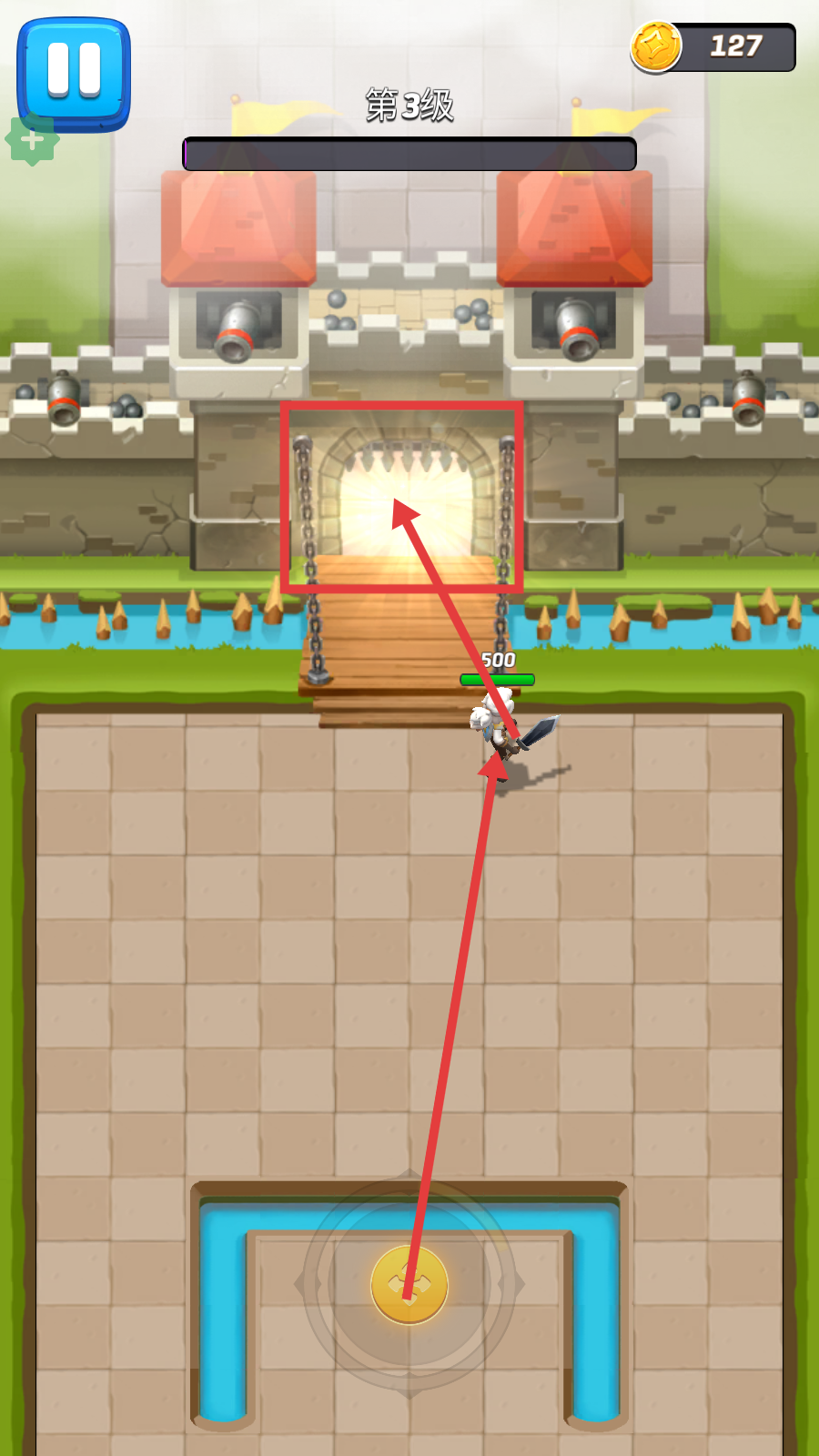 4、通关后前往要塞入口,进入新区域继续探索,积累的金币可用于强化角色,为后续战斗做好准备。