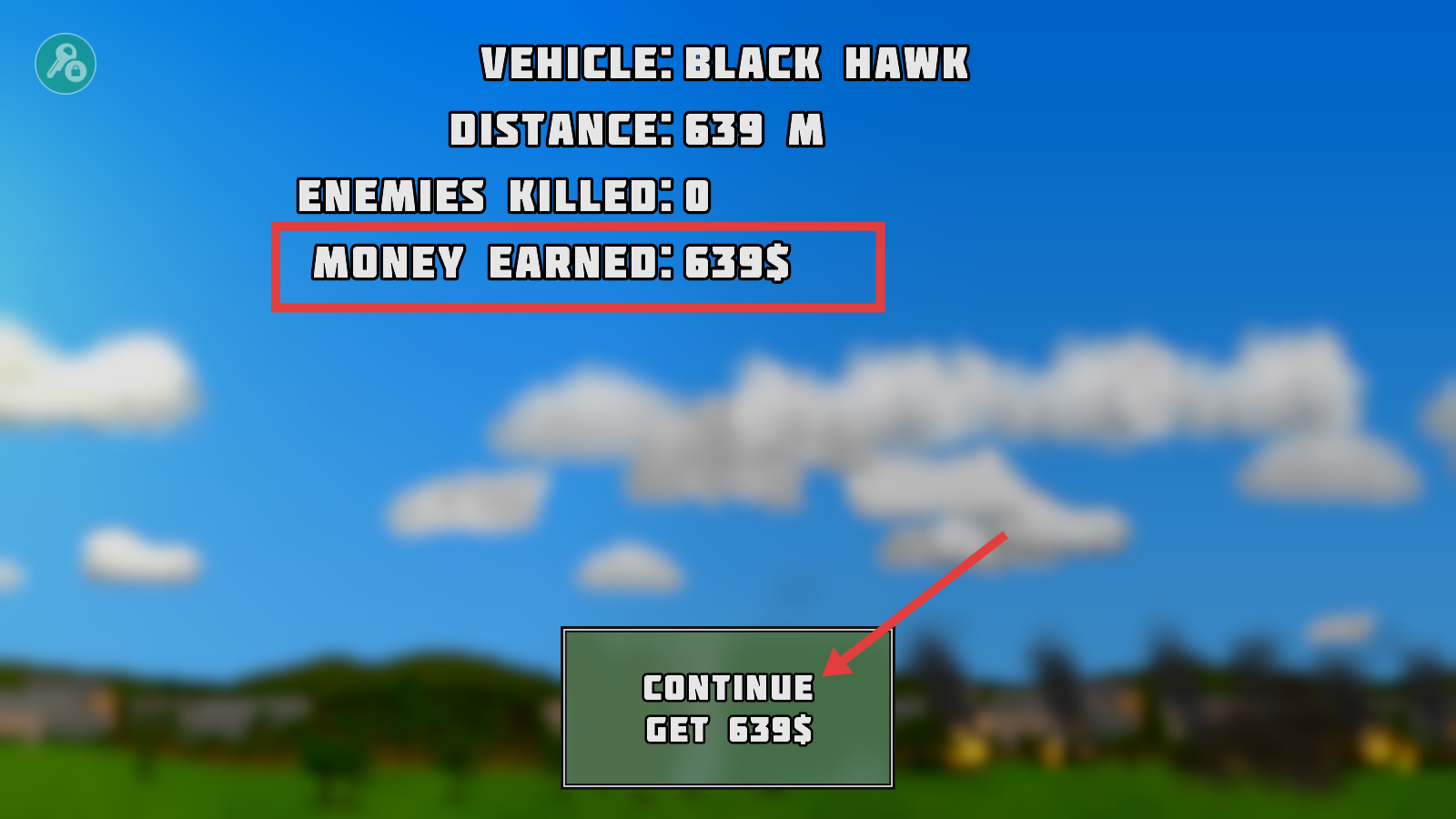 4、战斗结束后,领取【MONEYEARNED-639$】,点击【CONTINUE】继续,积累的金钱可用于直升机升级。