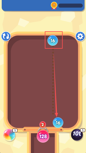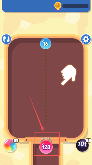 3、然后,松开手指发射,当两个相同数字的球碰撞即合并成更大数字,持续合并获得更高分数。
