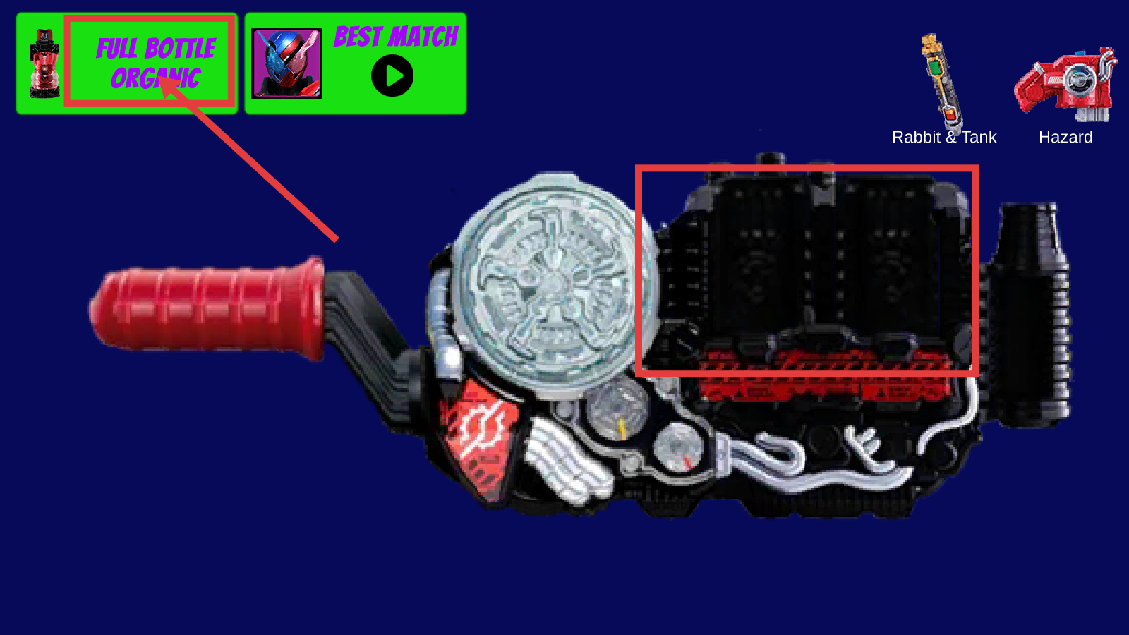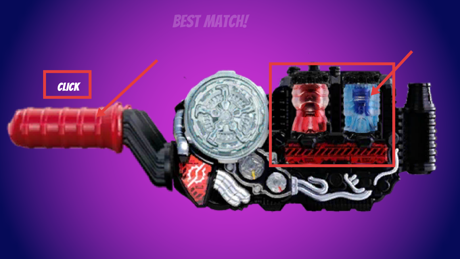 4、将【RABBIT】和【TANK】满瓶插入腰带,点击【CLICK】部件,完成【BEST-MATCH】,触发变身或技能效果。