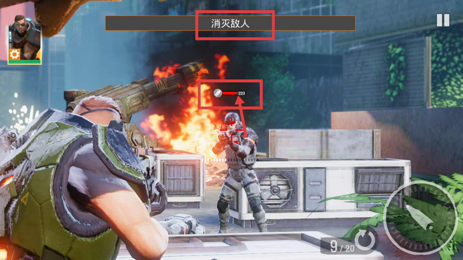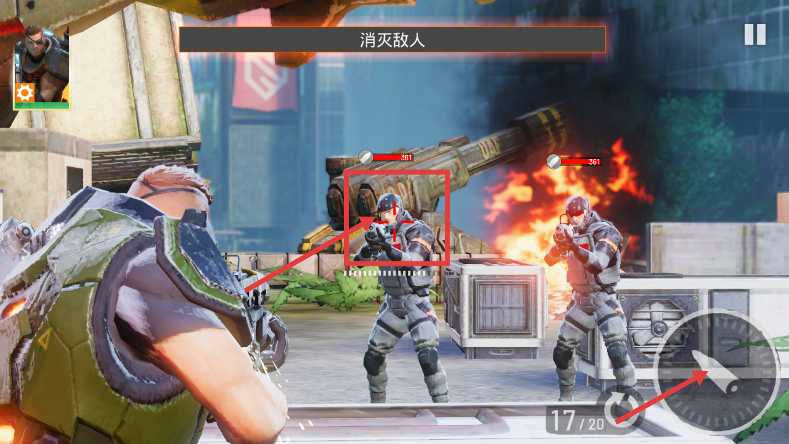 2、在【消灭敌人】任务中,瞄准敌人要害射击,利用右下角射击机制持续输出,快速清空敌方单位。