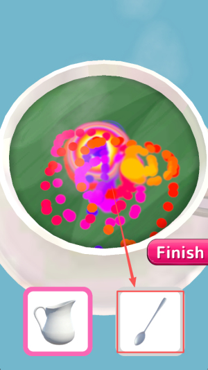 3、然后,持续调整角度,直到牛奶量达到“Finish”标线即可停止倾倒。