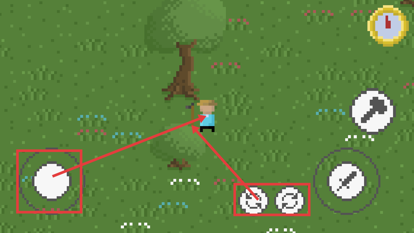 2、操控角色时,通过左侧摇杆移动,利用下方工具切换按钮更换工具,灵活应对不同操作场景。