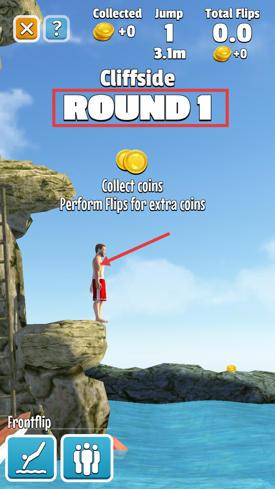 1、进入【Cliffside-ROUND1】,按提示【Collectcoins-PerformFlipsforextracoins】,收集金币并执行翻转,开启挑战。