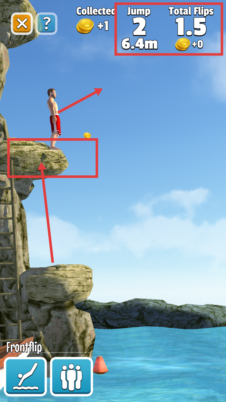 3、操控角色完成翻转动作,精准入水,提升翻转质量以获取更多金币与分数。