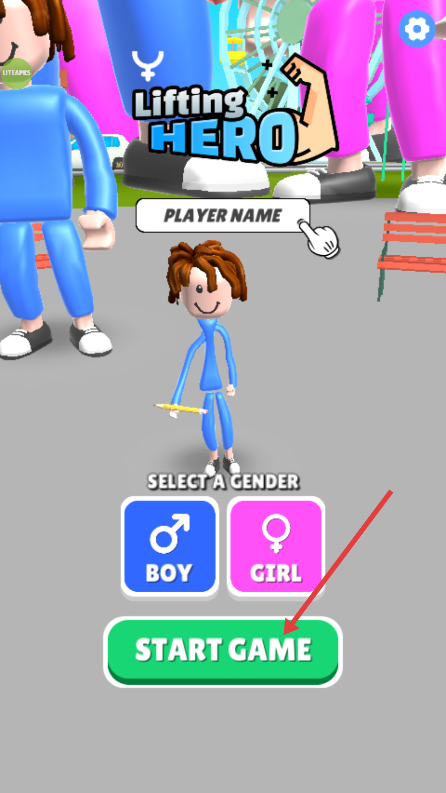 1、进入【Lifting-Hero】游戏,点击【START-GAME】开始,选择性别后开启肌肉锻炼的冒险之旅。