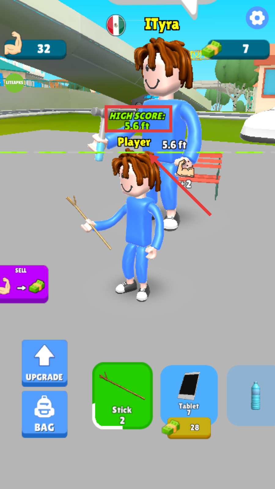 4、挑战【HIGH-SCORE-5.6ft】记录,提升角色高度,不断突破自身极限,刷新游戏高分。