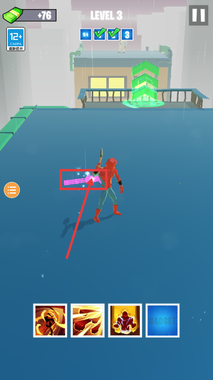 3、LEVEL3关卡中收集粉色武器,利用其提升攻击力,助力击败敌人推进关卡。