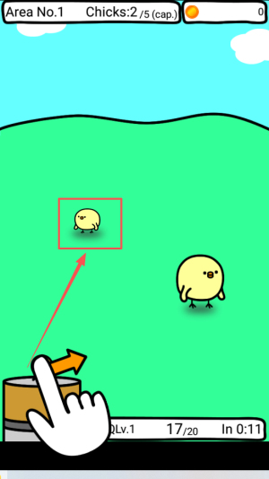 3、立刻轻点食槽图标,把饲料拖进区域,赶在 9 秒内完成投喂,让小鸡继续成长。