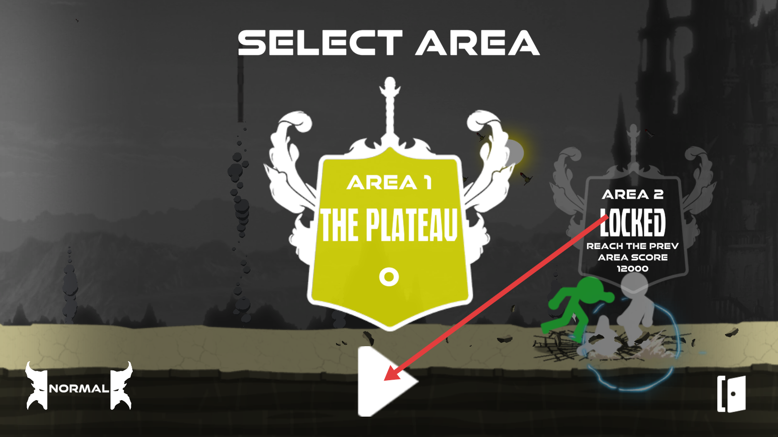 1、在【SELECT-AREA】界面选择【AREA-1-THE-PLATEAU】,点击播放按钮,开启该区域冒险。