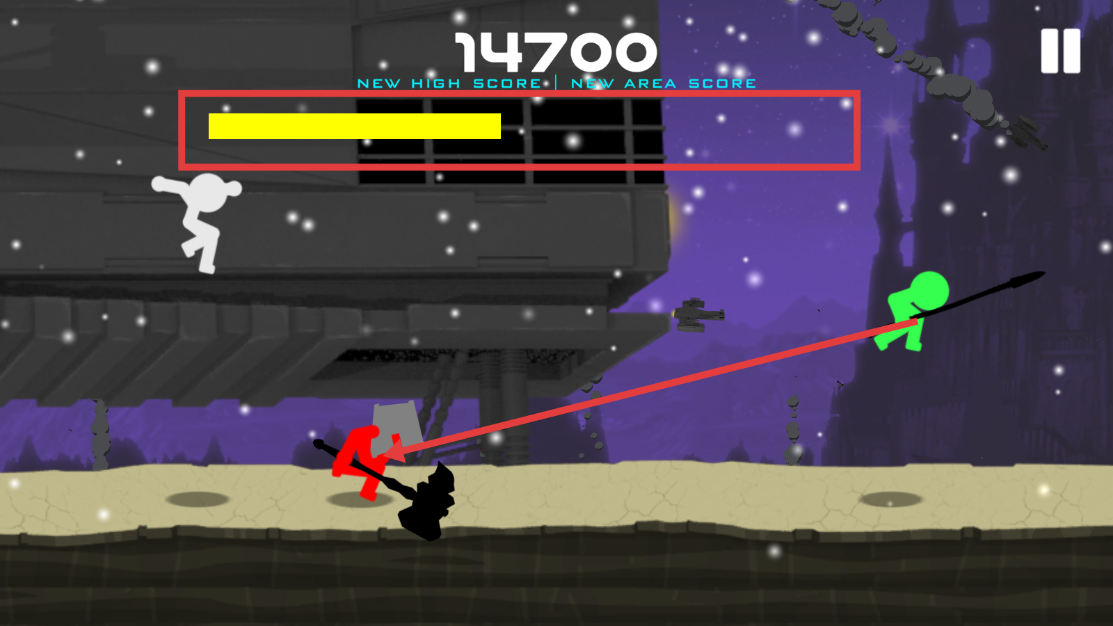 2、操控绿色角色向右移动,击败普通敌人,得分【400】,提升区域得分进度。