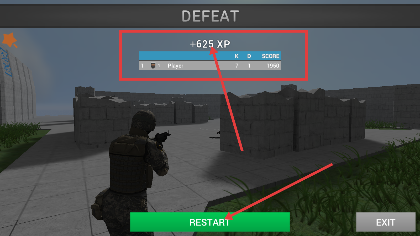 4、若战斗失败,可获得经验值(如+625XP),点击【RESTART】重新挑战,不断提升战斗技巧。