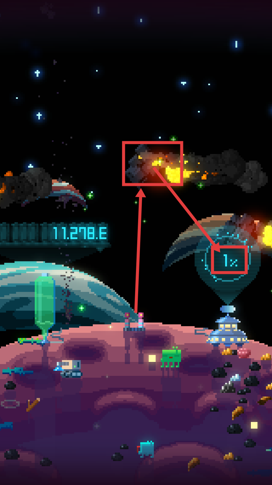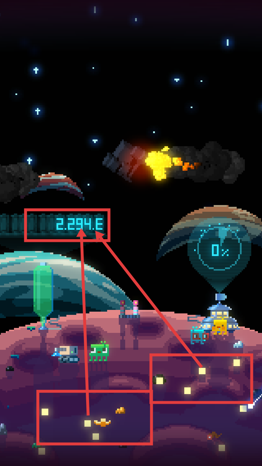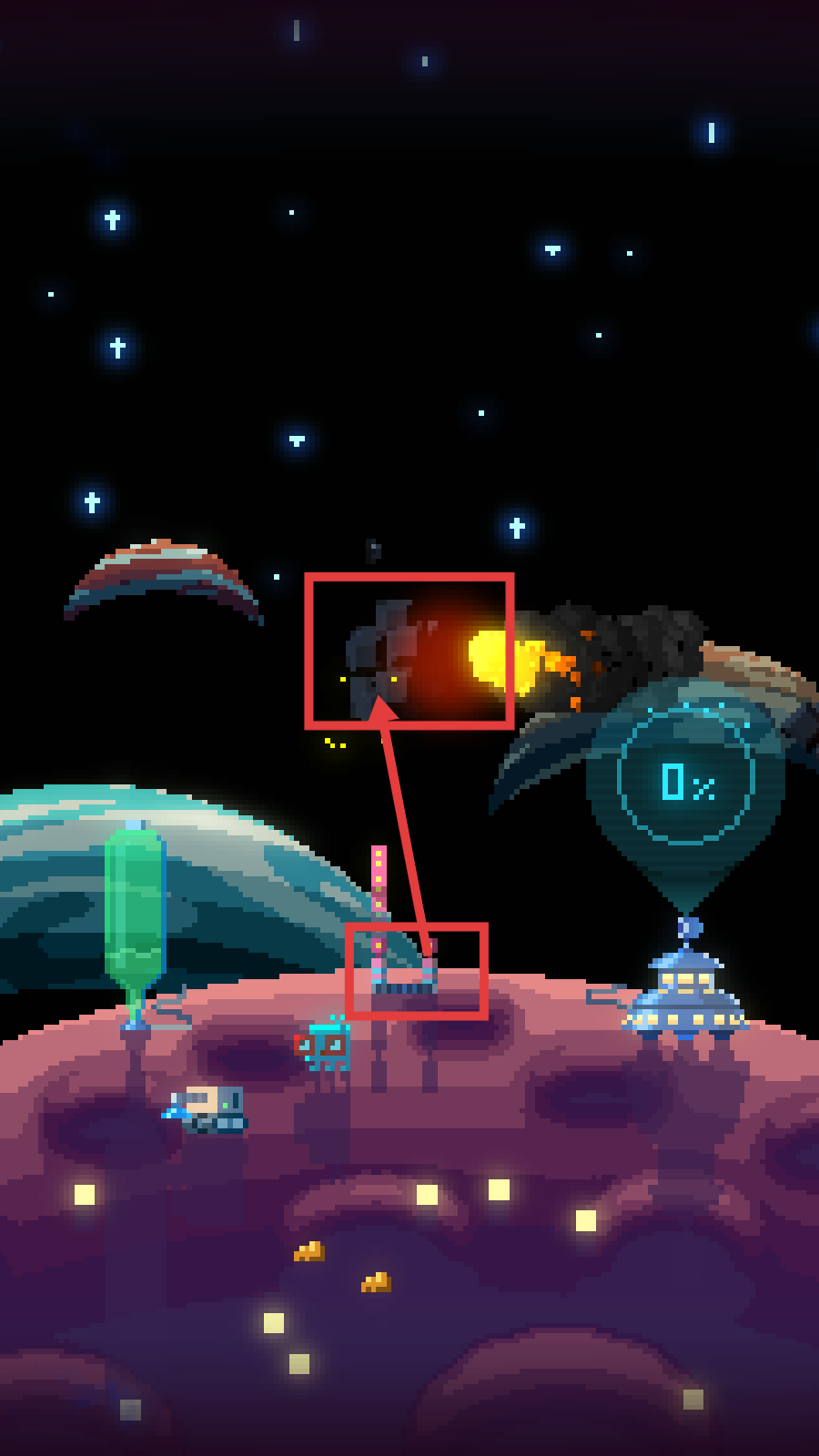 4、像素场景暗藏细节巧思,彗星分解时的粒子效果、火箭发射的光影轨迹、星球复苏的植被蔓延,让简约画风呈现出丰富的视觉层次。