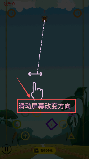 2、接着,按提示“滑动屏幕改变方向”,调整好角度后松手射出第一波球,撞击目标得分。