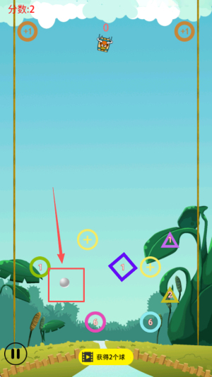 3、然后,每波结束会奖励“获得2个球”,及时点击领取并继续滑动调整,保持球数不断增加。