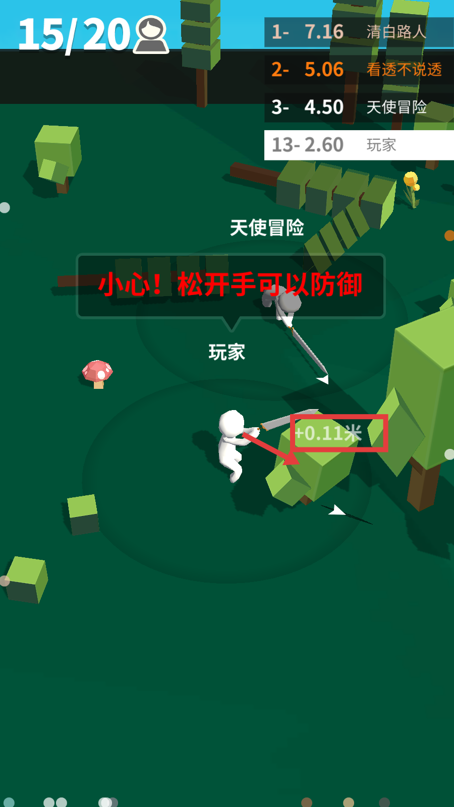 2、随机匹配机制实现实时多人对战,对手实力与武器长度动态变化,每一局对战都充满不确定性,避免模式化体验。