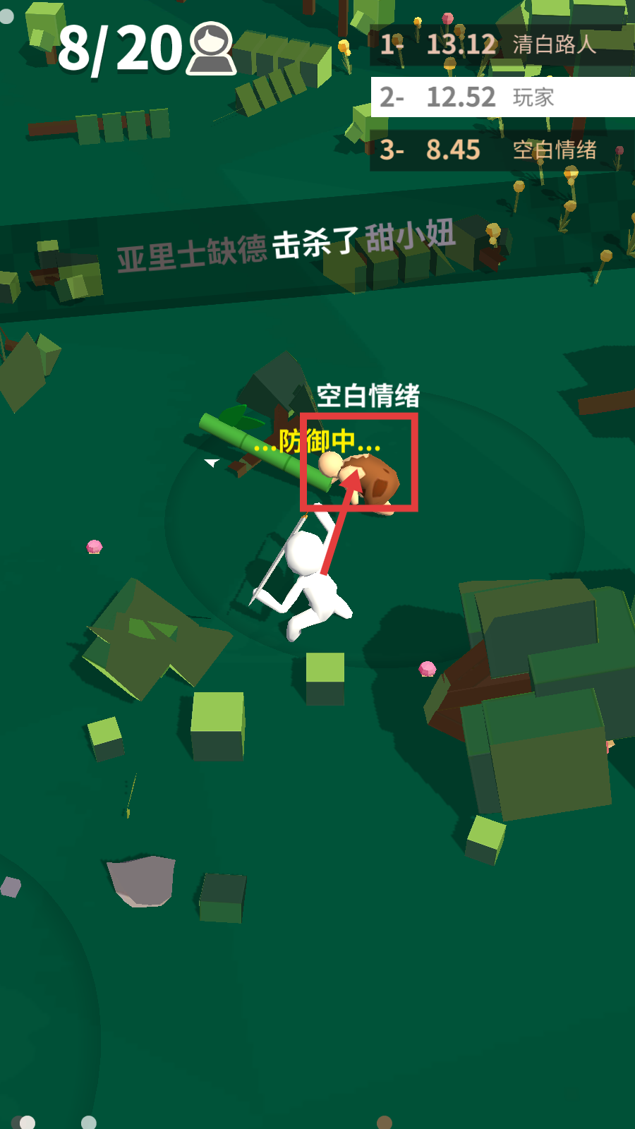 1、以“砍击积累长度”为核心成长逻辑,砍人、砍树、砍石头均可提升武器尺寸,其中击杀对手的长度增幅显著,驱动玩家主动参与对战。