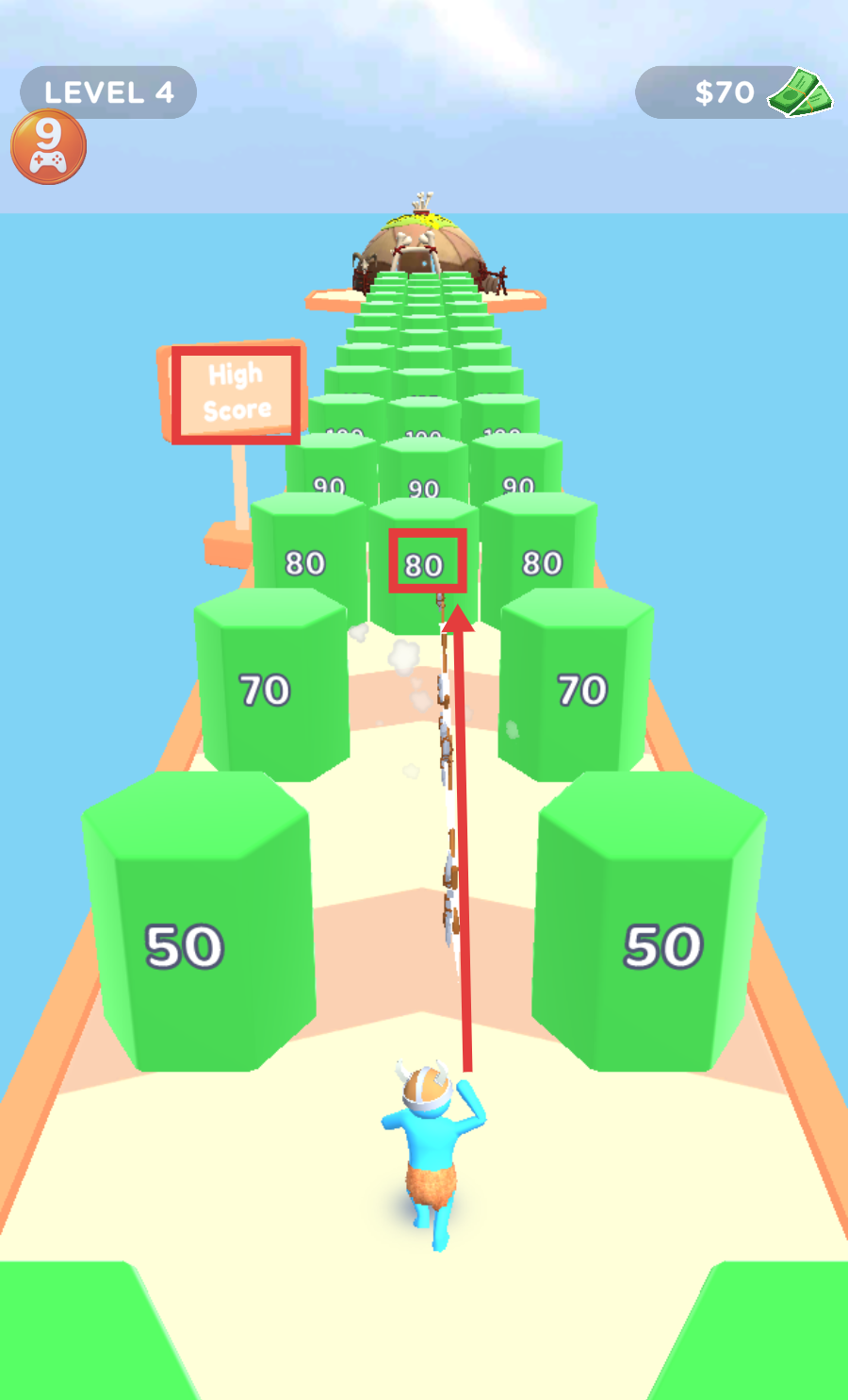 3、冲刺阶段瞄准【80】的绿色方块区域,冲击High-Score,提升关卡得分,助力文明进阶。