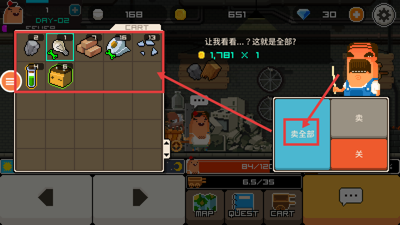 4、在交易界面点击“卖全部”,将收集的资源转化为金币,积累资金用于升级或解锁功能。